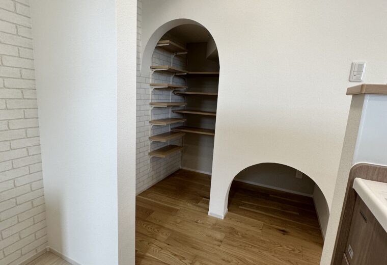 キッチン横にある便利なパントリー✩.*˚ アーチ開口がかわいくて空間のアクセントに✅ 棚は可動式なので高さ調整も自由自在( *ˊᵕˋ) 食品ストックやキッチン雑貨など“見えても整う収納”です✅ 毎日の家事がもっとラクに、 […]